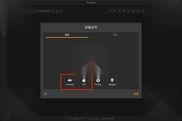 移动端流量分析需安装CA根证书,Reqable内置Android/iOS安装指引: