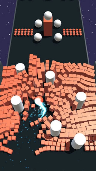 在彩球碰撞大作战中,玩家控制小白球击碎路径上的彩球和积木障碍。核心机制涉及碰撞同色小球得分,避免异色物体。关卡数量庞大,起始阶段简单,逐步增加复杂布局。难度随进度上升,要求精准控制。背景简约,聚焦物理破坏体验。