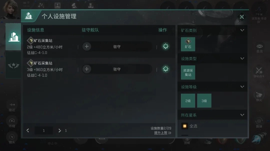 太空设施争夺是核心玩法,玩家在星图发现设施后解密占领,用于资源生产或防御。设施分个人、先遣团和远征军三类,个人设施提供基础资源,先遣团设施提升产出和战斗加成。占领需击败守军并在15公里内操作,成功后生成友军守卫。设施管理系统允许查看和管理,但先遣团操作需职位权限,派遣舰船防守可获蓝图经验,舰船损毁则经验损失。