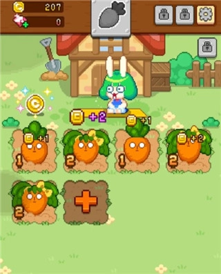 玩家获取红萝卜的途径除了商店购买外,还能通过完成游戏成就得到的宝石进行强化。尤其是对红萝卜初期等级的强化,能减少玩家的点击次数,避免手部不适。当玩家积累了足够金币后,还可以解锁新农场,种植更多种类的农作物。