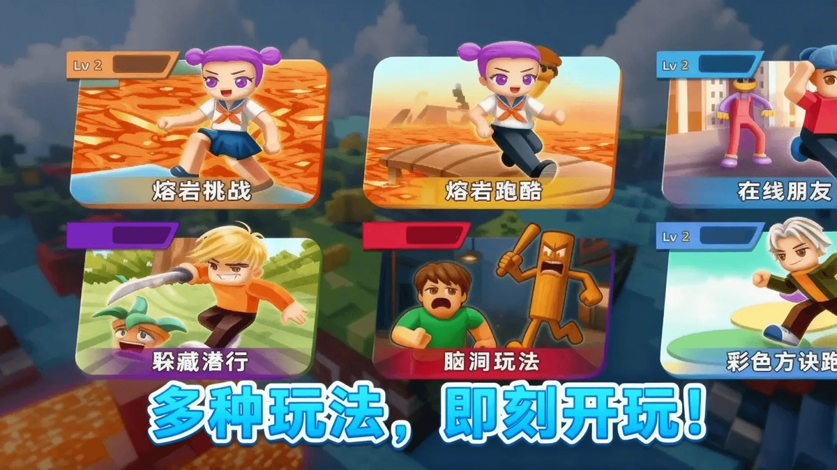 方块人闯关是一款采用方块风格打造的冒险奇幻游戏,多种迷你玩法。在核心模式里,岩浆会持续上涨,玩家需要灵活躲避尖刺、移动平台等各类障碍;此外,游戏还加入了躲猫猫、彩色方块跑等充满创意的脑洞玩法。玩家需依靠敏捷的身手和精准的操作来突破重重关卡,在紧张刺激的游戏氛围中,体验方块世界冒险带来的独特乐趣。