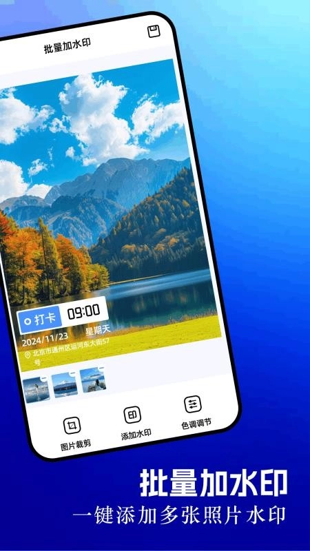 定位打卡水印相机手机版是一款具备实用水印添加与记录功能的平台,支持用户批量添加水印,其水印模板素材极为丰富,可轻松适配不同行业的水印拍照及添加需求,各类专属水印模板还允许用户自定义制作;若对该软件感兴趣,欢迎前来本站体验!