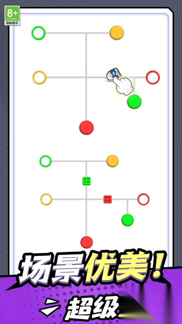 1. 核心玩法简单直观,玩家仅需用手指在屏幕滑动,把不同颜色填充到直线的指定区域。