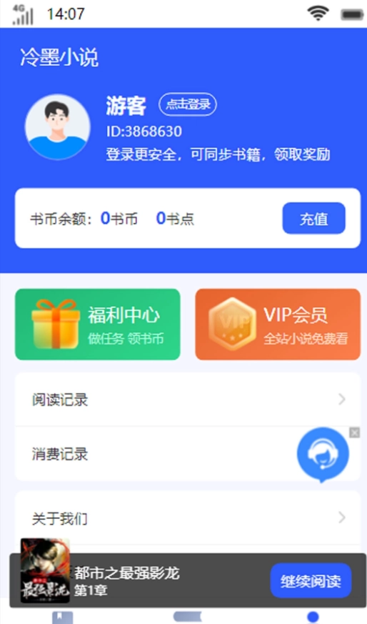 1、下载安装冷墨小说,打开软件主页