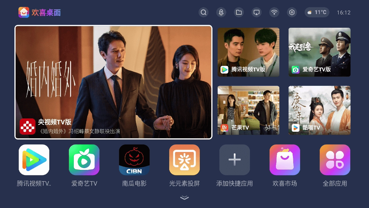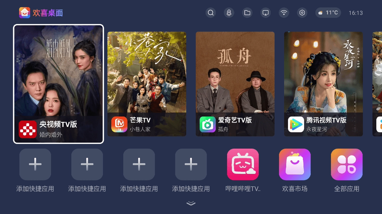 欢喜桌面是专为智能电视打造的桌面美化工具,在其纯净版中,用户可自由调整电视桌面的布局,切换多样的主题风格,还能设置屏保特效;同时也能借助该软件管理电视应用,将常用应用放置在醒目位置,或是设置开机自动启动此桌面。它运行流畅,界面简洁清爽。