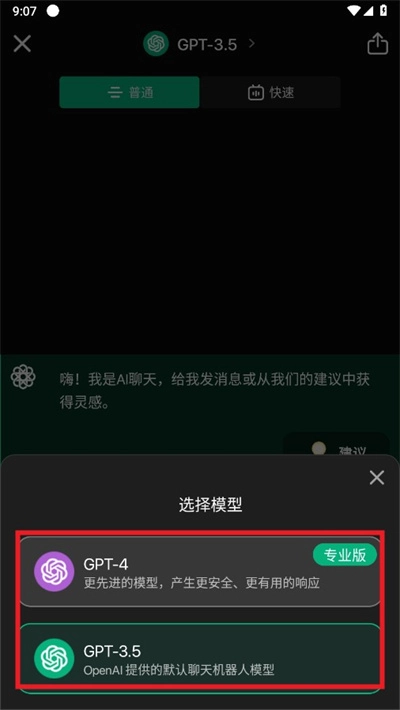 打开软件后,可以选择对应的版本点击"开始对话"。