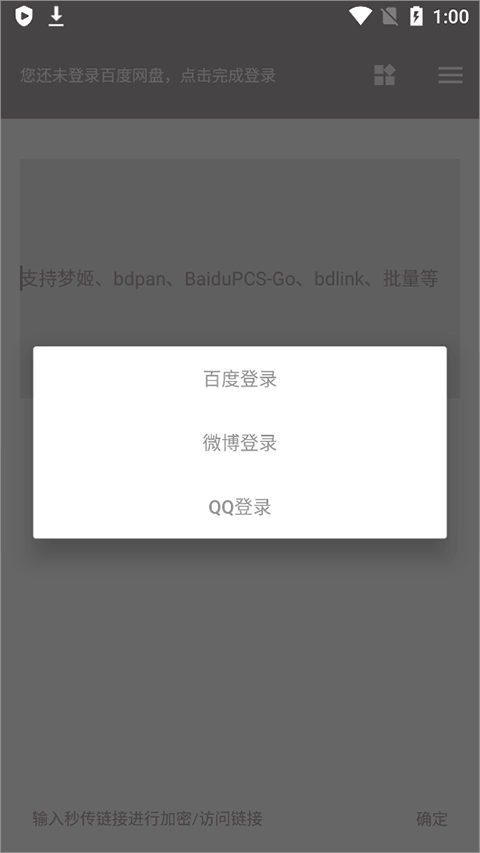 支持选择百度、微博或QQ三种方式进行账号登录。