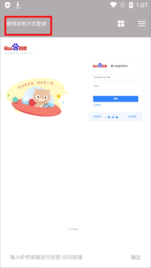 切换模式后,点击“使用其他方式登录”就能顺利进入应用。