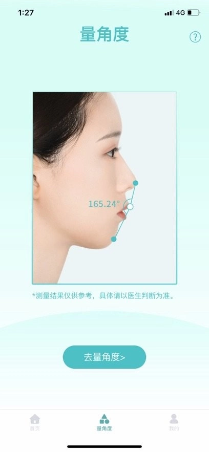 测量侧颜角度,对比嘴凸的程度,在测量过程里会实时显示度数。