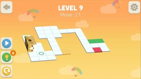 在游戏中,核心目标是在指定步数内将盒子准确移至终点。界面设计直观,玩家通过滑动屏幕控制滚动方向,遇难题时可利用左下角提示功能。解锁不同皮肤能个性化体验,后期关卡难度显著提升,需更高策略水平。