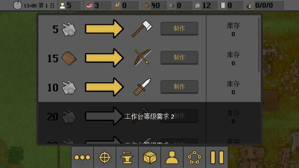 3、制造系统:于工作台与熔炉处制造斧头、弓箭、子弹等物资用于供给。