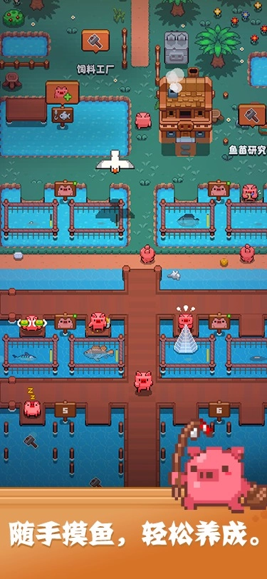 开拓猪之岛是一款像素风格的经营养成游戏,画风休闲又治愈。游戏设定在一座荒岛上,玩家需要收集各种资源来打造属于自己的城镇。通过招募角色能提升建造效率,还可以在地图上规划不同区域,比如住宅区、种植区、牧场和渔区等。高度自由的玩法让玩家能把小镇建造成理想中的模样。