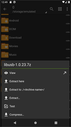 当用户找到需要压缩的文件后,长按该文件就能调出功能菜单;