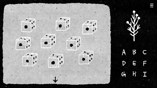 3、按照左侧还原后白点的位置和顺序,点击右侧的字母,再点击小树即可出现第二个点。