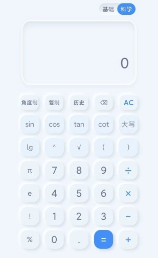 科学计算器:除了基础的加、减、乘、除四则运算外,还具备三角函数计算、角度与弧度制的切换、对数运算、阶乘计算以及开平方等多种高级计算功能。