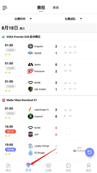 打开本站提供的5e对战平台手机版,点击“赛事”板块,玩家就能查看不同时间段的各类赛事内容。