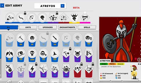 指挥你的军队进行编队部署,或是单独操控每个单位——你对每一个火柴人都拥有绝对控制权。你可以建造作战单位,开采黄金资源,学习剑术与枪矛技艺,训练弓箭手、法师,乃至召唤巨人。最终目标是摧毁敌人的雕像,将所有领土收入囊中。