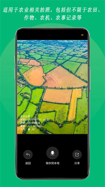 农用相机是专门为农业从业者打造的专业水印相机应用,支持在农田、作物、农机、农事等不同场景拍摄,系统会自动添加时间、地点、天气、经纬度等精准信息,助力记录工作细节,更有丰富水印模板,现场真实信息不可篡改,实用性很强。