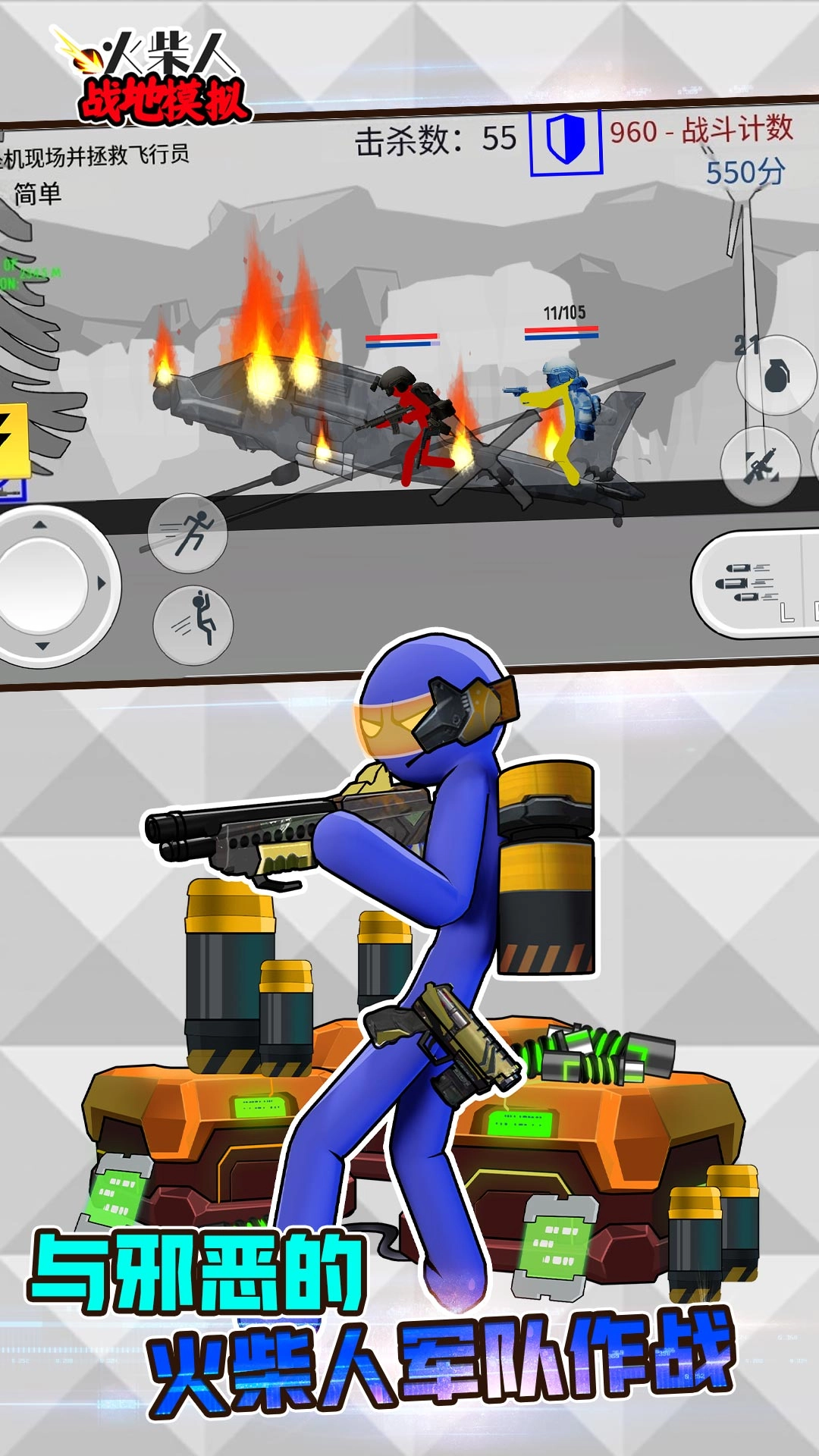 采用别具一格的火柴人卡通游戏风格,结合创新的玩法,打造出紧张刺激的战斗氛围。