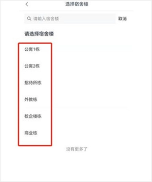 选择自己所居住的宿舍号。