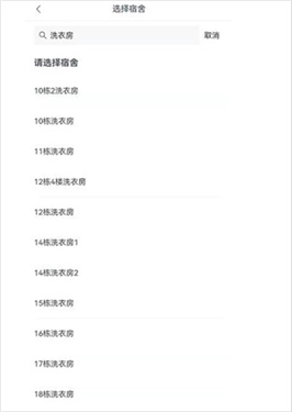 你可以选择自己所在的房间或商铺,也能进行简单搜索。比如像图中这样搜索“洗衣房”,之后点击需要充值的房间即可。