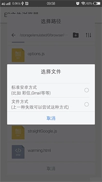 先定位到插件解压后的文件夹,从中挑选任意一个后缀为html或js的文件,接着选择第二个选项“文件方式”,这样插件就安装完成了。