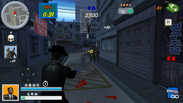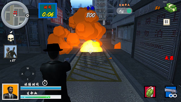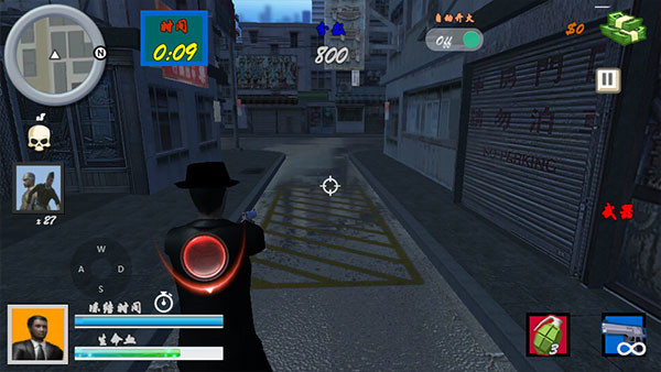 3、有了武器之后,就可以开始战斗了,操作方式非常的简单易上手,左边控制瞄准方向,右边使用武器射击等等;