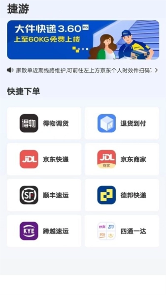 捷游快递始终聚焦用户需求,凭借整合行业资源、优化服务流程、强化技术支撑等举措,为用户打造“省心、省力、省钱”的寄件服务方案。不管是个人用户的小件紧急寄送,还是企业客户的大批量货物运输,平台都能借助灵活的功能设置与稳定的服务保障,全方位满足各类物流需求。