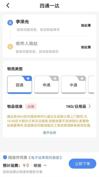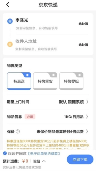 上门取件预约服务:在填写好寄件人和收件人的相关信息后,您可以选择立即安排取件,或者预约一个合适的时间。快递员会按照您指定的时间段上门收取包裹,同时您还能实时查看取件员的当前位置。