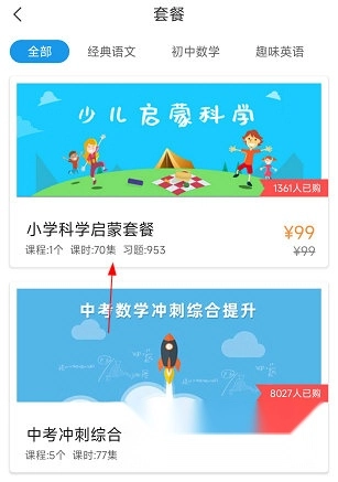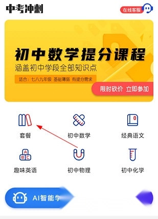 打开全科中考冲刺的课程页面,挑选一门自己感兴趣的课程。