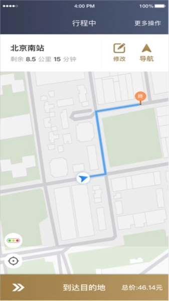一键定位自己当前的位置,输入目的地后,就能下单。
