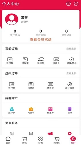 划分了我的订单、虚拟订单、我的财产等多种个人中心管理版块。