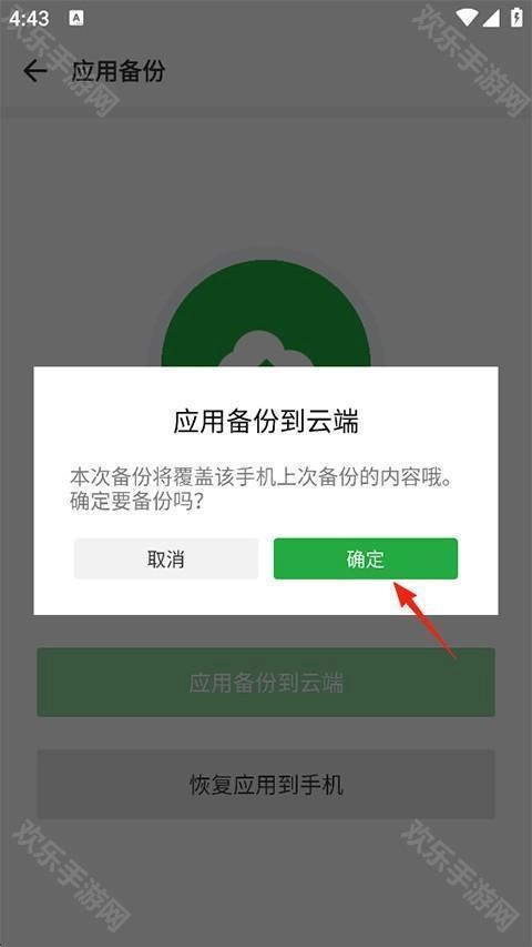 本次备份会把手机里的所有应用都备份到云端,请点击确定。