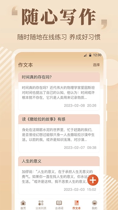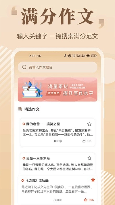 离线学习功能:可缓存作文库与素材库的内容,即便处于无网络环境,也能正常浏览已缓存的资源。