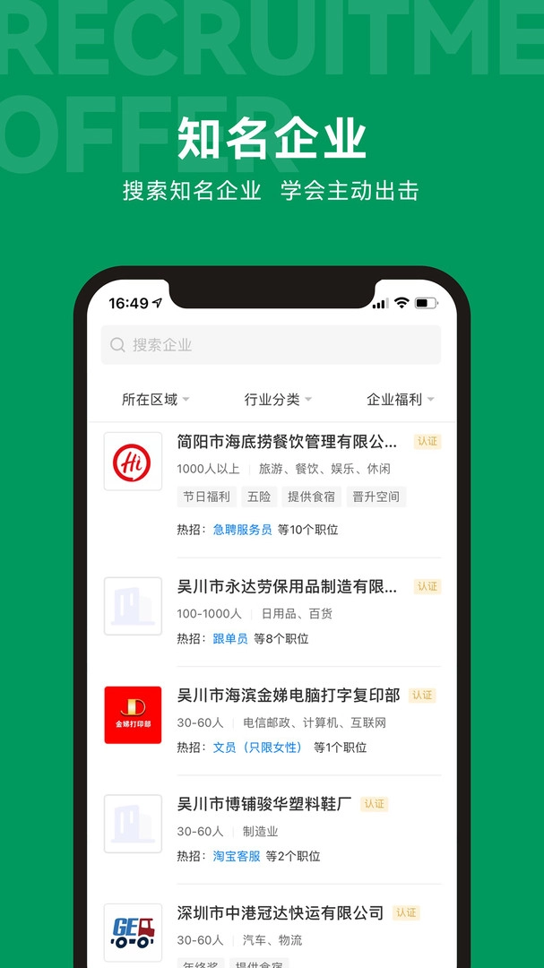 招聘信息每日都会更新,您只需随时刷新页面,就能查看最新发布的职位;也可以通过输入关键词,搜索自己心仪的企业和岗位。