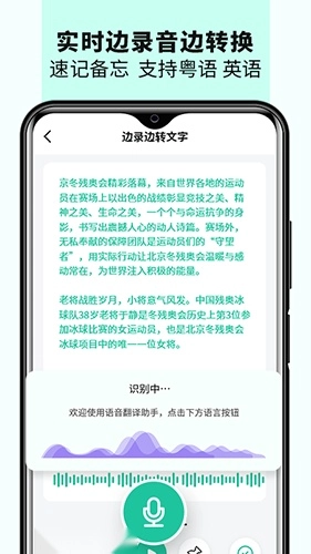 语音翻译功能支持语音转文字的需求,只需输入语音即可快速完成识别。