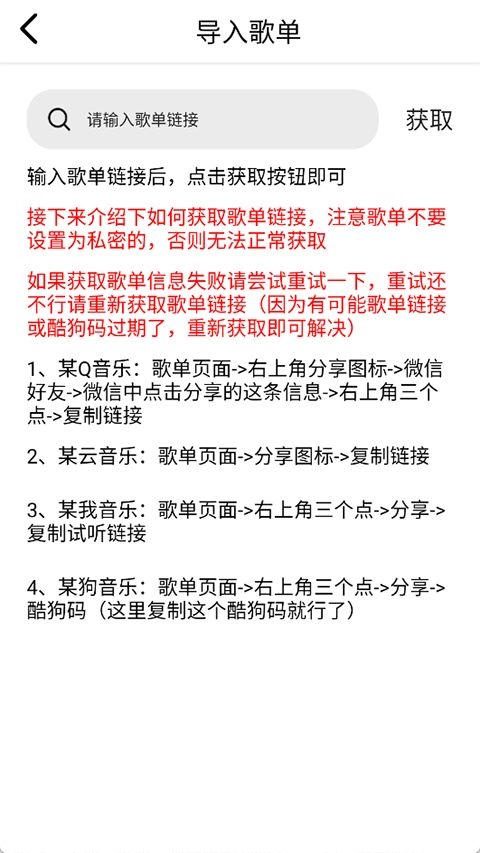 4、歌单导入:兼容QQ音乐、网易云等主流平台歌单,一键导入实现跨平台统一管理,避免重复创建歌单的繁琐操作。