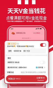 会员专享天天V金当钱花,点餐满额立抵10元。