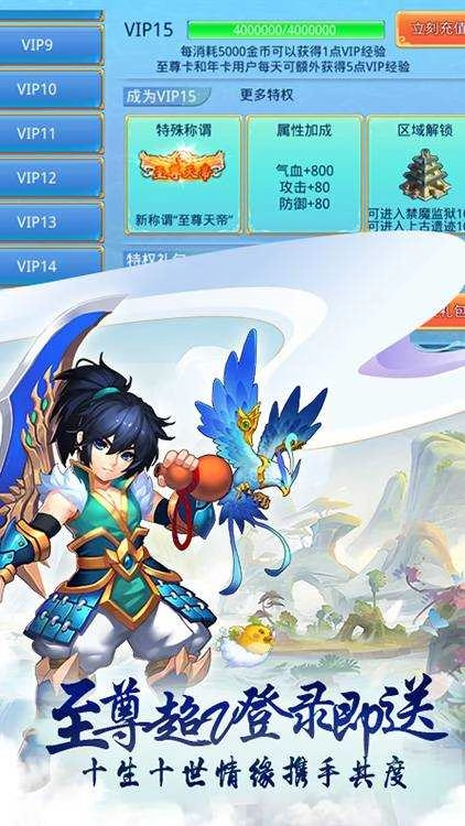 上线即送满级VIP(VIP15),VIP11礼包可免费领取,还能获得1000万绑银、宝箱*10以及70级套装。