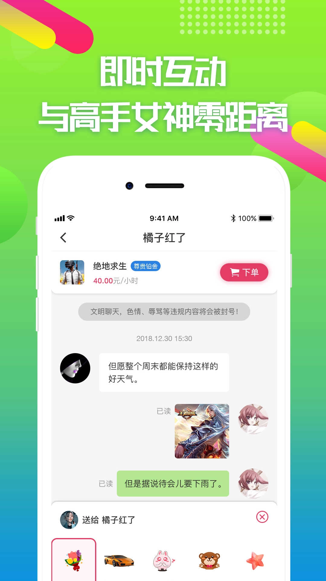 经过严格审核认证的上万游戏、娱乐大神提供陪练服务,让你能与女神零距离沟通,和喜欢的妹子一起畅玩游戏!