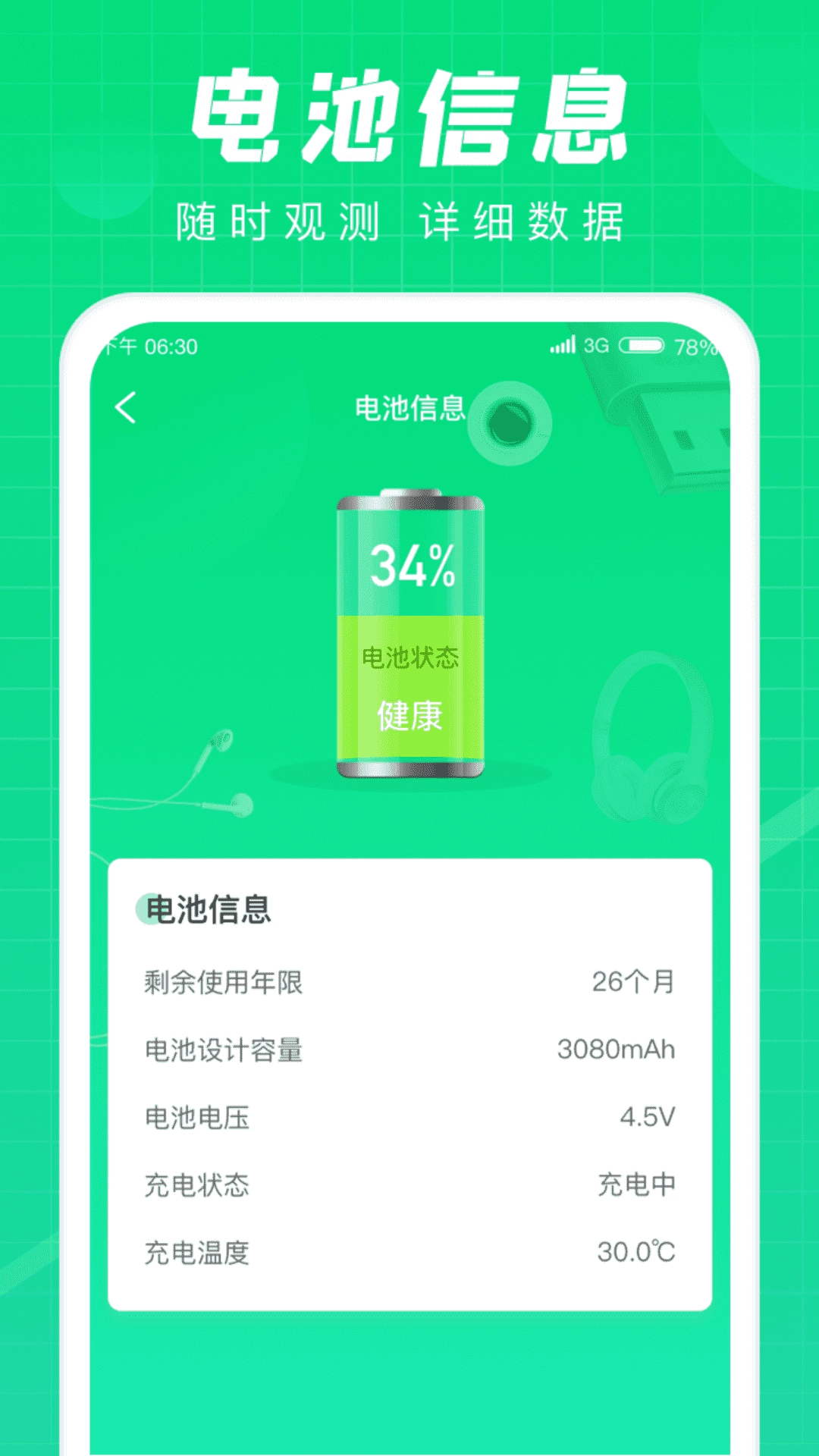 实时了解手机电池信息,避免电池损耗寿命降低。