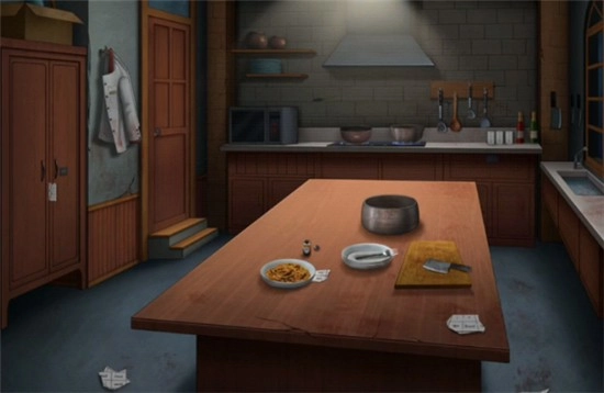 进入厨房后,先收集5到6张碎纸片,接着收集桌上的毒药线索,再取下墙上挂着的衣服名牌以及兜中的烟盒,之后拿取墙上挂着的用具,最后将其对着锅中使用(做好准备)。