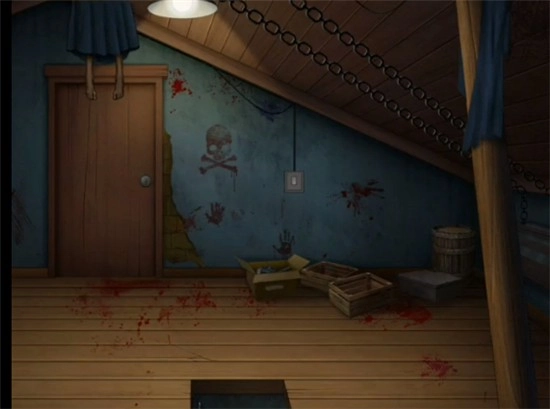 吊着的东西不用理会,先找找能用得上的物品。在下方的工具箱里发现了一个锯子(看起来也有点像刀子),剩下的就只能去另一侧,也就是阁楼2那边继续探索了。