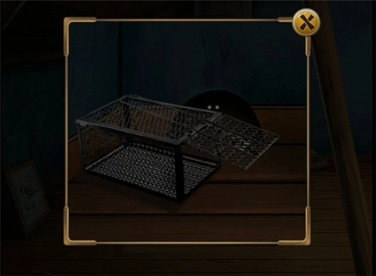在屋子右侧能找到捕鼠笼,现在你应该清楚接下来的步骤了吧?回到阁楼2,打开老鼠洞,把捕鼠笼和食物用上去。