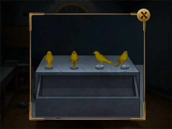 别着急,还记得小编一开始提到的那些鸟画吗?它们最后是会派上用场的。要是记不清了,就回去再看一遍相关内容——这样你就能解开屋子最左侧壁橱下方那个和鸟朝向有关的密码盒了。打开盒子后,会得到一个类似齿轮的道具,接着点击墙上影子里红色的区域,把这个道具(叫“齿轮之眼”听起来还挺有格调的)用上去,墙上就会出现一个小口。点开小口后,能看到里面摆满了瓶子,每个瓶子都标着姓名,里面装的是眼睛。