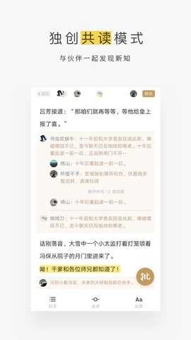 【全新的共读功能】新版本推出了独创的共读功能,你可以和小伙伴一起组队看书、聊书;