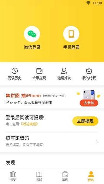 邀请好友一同阅读小说,立即获得现金奖励。好友阅读小说时,双方均可获得金币!