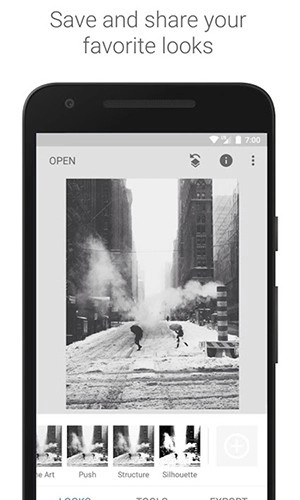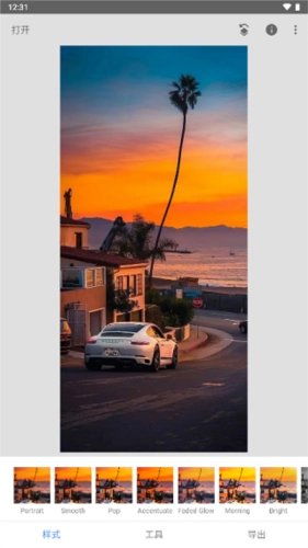 指尖修图中文版是谷歌推出的手机修图应用,能快速编辑图片,一键即可完成修改。软件提供丰富的工具和滤镜,可对照片进行亮度、环境、对比度、饱和度等细节调整,还有多种风格供你体验,让照片更具特色。此外,它还具备分享功能,方便你与亲友分享创作成果,不妨来尝试一下!