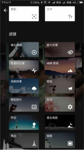 提供各种有趣且极具新意的滤镜,例如“怀旧”、“戏剧”、“复古”、“杂质”以及“移轴”。