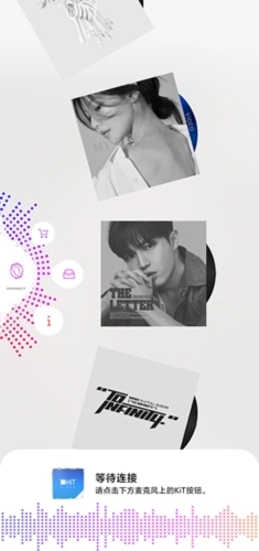 打开KiTPlayer(原KihnoPlayer),把KiT专辑的配件——KiTswitch移到移动设备的下端,然后轻轻按下它,就能听到“咔哒”的声响。
